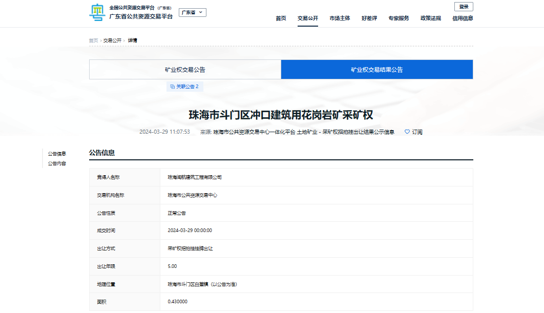 成交價(jià)1.82億元,廣東珠海成功競出一宗礦權(quán)!