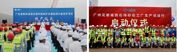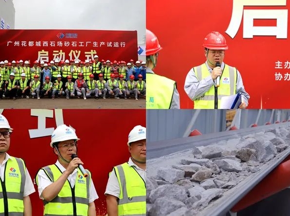 3月31日上午,廣州花都項目砂石工廠舉行生產(chǎn)試運行啟動儀式,當設備機長摁下啟動按鈕,滿載原料的礦卡汽車緩緩向粗碎車間受料坑卸料,經(jīng)過粗碎、中