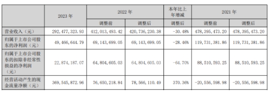 4月2日,湖南發(fā)展(000722)近日發(fā)布2023年年度報(bào)告,報(bào)告期內(nèi)公司實(shí)現(xiàn)營(yíng)業(yè)收入292,477,323.93元,同比下滑30.48%;歸屬于上市公司股東的凈利潤(rùn)49,466,644.79元,同比下滑28.46%。