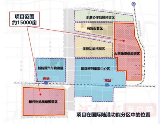 項(xiàng)目規(guī)劃面積約10平方公里,建設(shè)規(guī)模約654萬平方米,投資超過475億元,主要建設(shè)鐵路專用線、中歐中亞班列集結(jié)中心、國家重要物資儲(chǔ)備中心、大宗商品交易交割中心、海關(guān)特殊監(jiān)管區(qū)、“平急兩用”物流基礎(chǔ)設(shè)施等,其中,項(xiàng)目一期選址于鄭州國際陸港新址東作業(yè)區(qū),總投資約46億元。