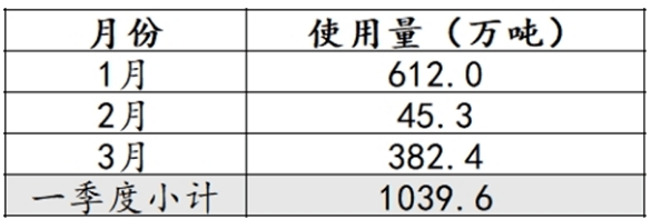 1、2024第一季度的使用量達(dá)到了1176萬(wàn)噸,遠(yuǎn)高于2023年的同期1002萬(wàn)噸,增長(zhǎng)了17.36%;環(huán)比2023年第四季度2067萬(wàn)噸,下降了43.35%。