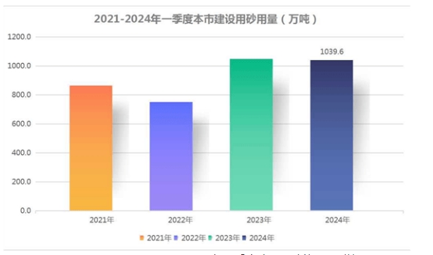 圖1-2021、2022、2023、2024年一季度建設(shè)用砂使用量對(duì)比