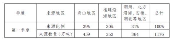 礦的開(kāi)工投產(chǎn),資源費(fèi)、運(yùn)費(fèi)等優(yōu)勢(shì)凸顯,進(jìn)入上海市場(chǎng)數(shù)量明顯增加。舟山地區(qū)占39%,福建沿海地區(qū)占30%,湖州、北方沿海、安徽、湖北等地區(qū)占31%。