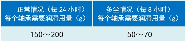 設(shè)備不同工作條件下的潤(rùn)滑脂用量: