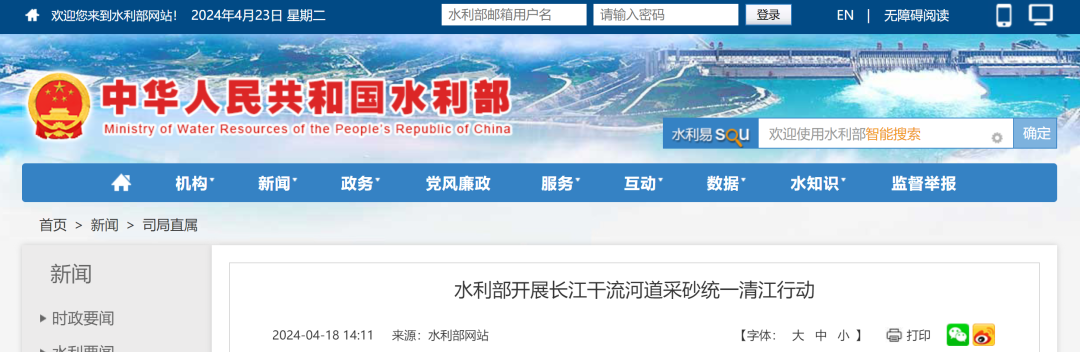 為深入貫徹落實《長江保護法》《長江河道采砂管理條例》,嚴厲打擊非法采砂,切實維護長江河道采砂管理良好秩序,保障長江河勢穩(wěn)定和防洪安全、供水安全、通航安全、生態(tài)安全,近期,水利部部署開展長江干流河道采砂統(tǒng)一清江行動。