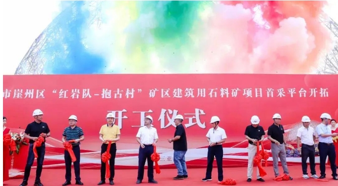 “5、4、3、2、1,起爆!”,4月26日,隨著爆破指揮員一聲令下,三亞崖州區(qū)“紅巖隊(duì)-抱古村”礦區(qū)建筑用石料礦項(xiàng)目首采平臺開工儀式“首爆”成功,標(biāo)志著項(xiàng)目建設(shè)又向前邁出了堅(jiān)實(shí)的一步。緊隨其后的剪彩儀式,象征著項(xiàng)目正式邁入運(yùn)營階段。