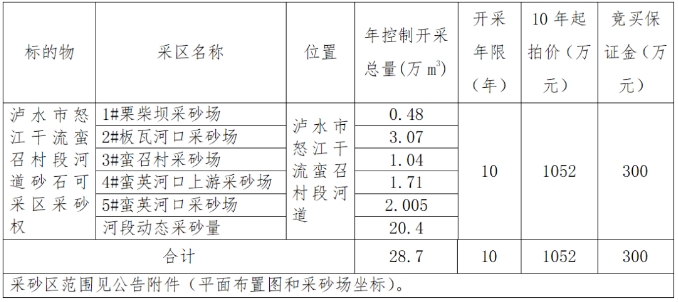 一、拍賣標的物:瀘水市怒江干流蠻召村段河道砂石可采區(qū)采砂權。