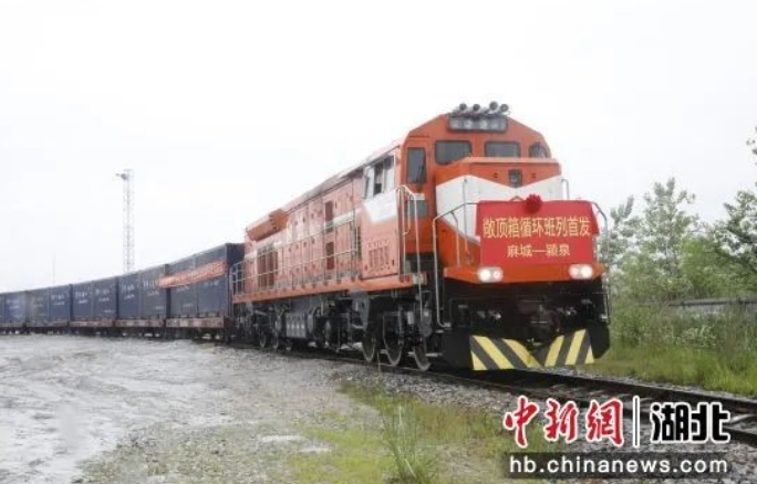 5月4日18時(shí)12分,79374次貨運(yùn)列車裝載32組敞頂箱共計(jì)2048噸的碎石從中國(guó)鐵路武漢局集團(tuán)公司(下稱“武鐵”)麻城站始發(fā),開(kāi)往位于安徽阜陽(yáng)的潁泉站,標(biāo)志著麻城地區(qū)首次開(kāi)行至潁泉敞頂箱循環(huán)班列。