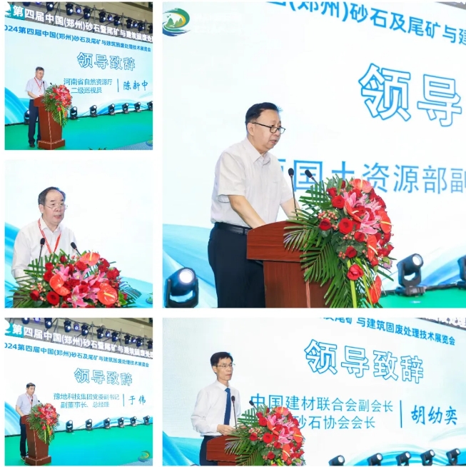 6月3日,在首日開幕式上,原國土資源部副部長汪民、中國建材聯(lián)合會副會長、中國砂石協(xié)會會長胡幼奕、河南省自然資源廳二級巡視員陳新中、河南省自然資源廳原二級巡視員、河南省礦業(yè)協(xié)會會長馮進城、河南省豫地科技集團副書記、副董事長、總經(jīng)理于偉上臺致開幕辭,對2024年第四屆中國(鄭州)砂石及尾礦與建筑固廢展的開幕表示熱烈祝賀。