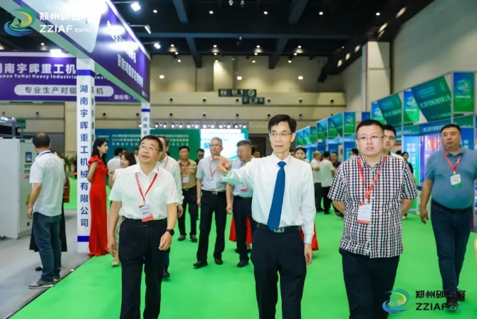 開幕式結(jié)束后,中國建材聯(lián)合會副會長、中國砂石協(xié)會會長胡幼奕、河南省自然資源廳原二級巡視員、河南省礦業(yè)協(xié)會會長馮進城等領(lǐng)導(dǎo)嘉賓一同進行巡館活動,參觀展品,觀看展品陳列情況,與展商們進行交流洽談并合影留念。