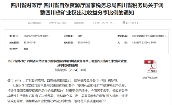 為深入學(xué)習(xí)貫徹習(xí)近平總書記來川視察時(shí)關(guān)于“要強(qiáng)化戰(zhàn)略性礦產(chǎn)資源等生產(chǎn)供應(yīng),打造保障國家重要初級(jí)產(chǎn)品供給戰(zhàn)略基地”的重要指示精神,全面落實(shí)省委、省政府關(guān)于戰(zhàn)略性礦產(chǎn)找礦行動(dòng)有關(guān)決策部署,推動(dòng)建立省、市、縣共同參與的找礦投入機(jī)制,經(jīng)報(bào)省政府同意,調(diào)整我省礦業(yè)權(quán)出讓收益分享比例。現(xiàn)將有關(guān)事項(xiàng)通知如下:
