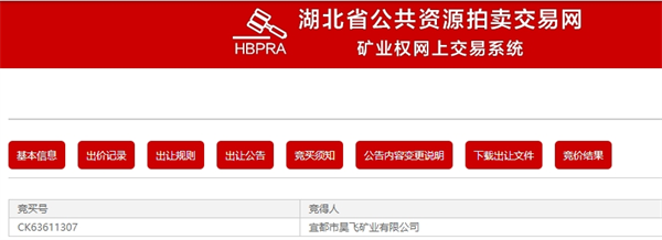 礦山開(kāi)采方式為露天開(kāi)采,開(kāi)拓方式為公路運(yùn)輸,可采儲(chǔ)量為4051.54萬(wàn)噸其中,電石用灰?guī)r1752.45萬(wàn)噸、水泥用灰?guī)r666.87萬(wàn)噸、建筑石料用灰?guī)r1632.22萬(wàn)噸,競(jìng)拍起始價(jià)5600元,年生產(chǎn)規(guī)模300萬(wàn)噸,出讓年限14.2年,宜都市昊飛礦業(yè)有限公司以底價(jià)競(jìng)得。