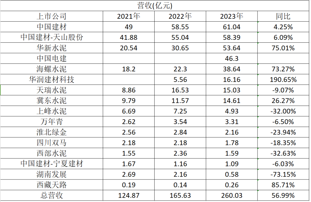 2023年?duì)I收增長(zhǎng)最快的公司是華潤(rùn)建材、西藏天路、華新水泥和海螺水泥。