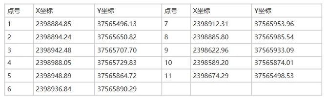 礦區(qū)范圍由以下11個(gè)拐點(diǎn)坐標(biāo)圈定(2000國家大地坐標(biāo)系):