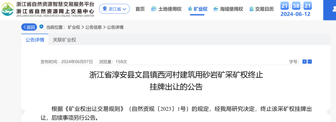近日,浙江省淳安縣文昌鎮(zhèn)西河村建筑用砂巖礦采礦權(quán)終止掛牌出讓。據(jù)了解,該礦權(quán)在終止之前無人報(bào)價(jià),且該礦權(quán)計(jì)劃掛牌結(jié)束日期為6月12日15點(diǎn)。