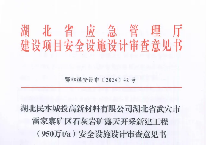 2024年6月11日,湖北省應(yīng)急管理廳出具了《湖北民本城投高新材料有限公司湖北省武穴市雷家寨