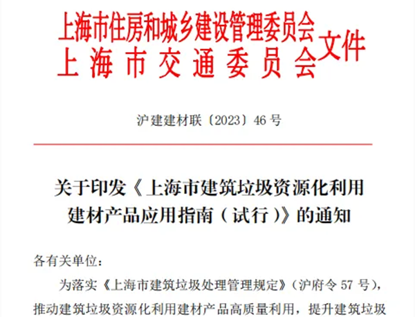 近年來,上海市住房城鄉(xiāng)建設(shè)管理委積極落實(shí)無廢城市建設(shè)要求,加快推廣建筑垃圾再生產(chǎn)品應(yīng)用,并聯(lián)合市交通委印發(fā)了《上海市建筑垃圾資源化利用建材產(chǎn)品應(yīng)用指南》,明確了拆房、裝修垃圾、廢棄混凝土再生建材種類、原料(再生骨料)標(biāo)準(zhǔn)和應(yīng)用場景,為推廣資源化利用建材產(chǎn)品提供技術(shù)支撐,制定并推出DB31/T1483-2024《建筑垃圾與工程泥漿再生自密實(shí)填筑技術(shù)規(guī)程》地方標(biāo)準(zhǔn)。