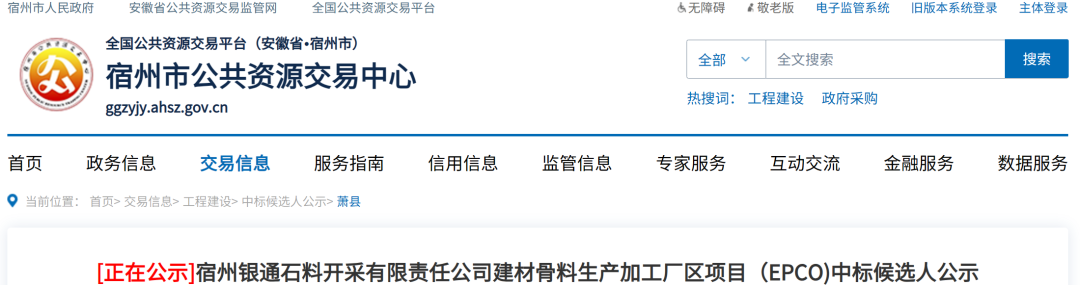 6月18日,安徽省宿州市公共資源交易中心發(fā)布宿州銀通石料開采有限責(zé)任公司建材骨料生產(chǎn)加工廠區(qū)項目(EPCO)中標(biāo)候選人公示。第一候選人為中鐵十九局集團(tuán)有限公司聯(lián)合體,聯(lián)合體成員為蘇州中材非金屬礦工業(yè)設(shè)計研究院有限公司。投標(biāo)報價,建筑安裝工程費(fèi)(費(fèi)率)為91.6%(約2.579億元),生產(chǎn)承包費(fèi)用綜合單價為18.7元/噸,運(yùn)營期為10年。