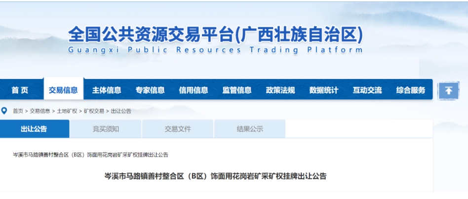 據(jù)悉,廣西岑溪市馬路鎮(zhèn)善村整合區(qū)(B區(qū))飾面用花崗巖礦采礦權掛牌,整合區(qū)內可利用飾面用花崗巖礦礦石量5632.8616萬方,荒料量1402.58萬方。可利用的綜合利用建筑石料用花崗巖礦礦石量(控制+推斷)4230.2791萬方(11083.33萬噸)。可利用的綜合利用全~強風化花崗巖(建筑用砂)礦石量為685.5875萬方。可利用的綜合利用中風化花崗巖(填方用石料)礦石量499.2946萬方。合計可利用花崗巖礦量12450萬方。