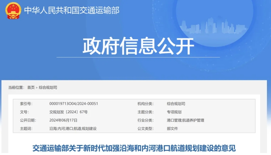 近日,交通運輸部發(fā)布《交通運輸部關(guān)于新時代加強沿海和內(nèi)河港口航道規(guī)劃建設(shè)的意見》(簡稱《意見》)。《意見》中指出,加大航運建設(shè),重點推進鐵水聯(lián)運、江(河)海聯(lián)運,砂石骨料運輸半徑有望進一步擴大,砂石跨區(qū)域流通能力加強。《意見》要求,組織編制長三角、粵港澳等重點區(qū)域和省級港口與航道布局規(guī)劃,海河兼?zhèn)涞氖》荩y(tǒng)籌做好沿海與內(nèi)河、港口與航道的協(xié)同發(fā)展。新納入全國規(guī)劃的11個主要港口,原則上要在2025年前編制港口總體規(guī)劃。