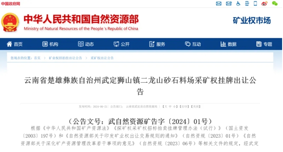 云南6377萬噸砂石礦2376萬元掛牌出讓,投產(chǎn)1-2年內(nèi)必須通過綠色礦山評估核查!