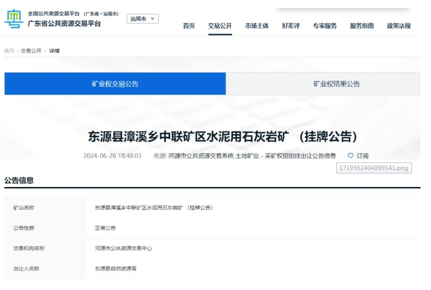 0.94元/噸!廣東河源掛牌出讓儲(chǔ)量超億噸、年產(chǎn)500萬(wàn)噸石灰?guī)r礦