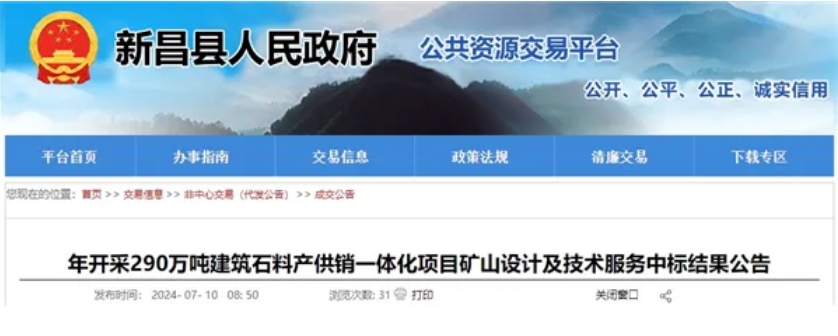 7月9日,浙江省紹興市新昌縣人民政府發(fā)布年開采290萬(wàn)噸建筑石料產(chǎn)供銷一體化項(xiàng)目礦山設(shè)計(jì)及技術(shù)服務(wù)中標(biāo)結(jié)果公告。山東乾舜礦冶科技股份有限公司、寧波砃垠地礦環(huán)境技術(shù)有限公司(聯(lián)合體成員)以338萬(wàn)元中標(biāo)該項(xiàng)目,服務(wù)期限3年。