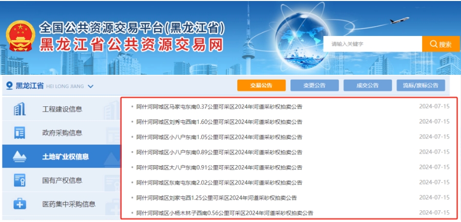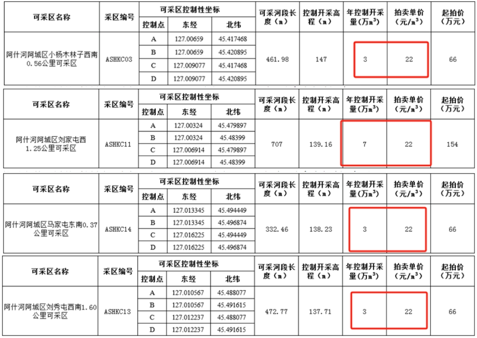 近日,黑龍江省旭升拍賣有限公司接受委托,對阿城區(qū)阿什河2024年河道采砂權(quán)進(jìn)行公開拍賣。包含大八戶東南0.91公里可采區(qū)等8條河道采砂權(quán),年開采量共計34萬方,起拍價共計748萬元,拍賣單價22元/方。