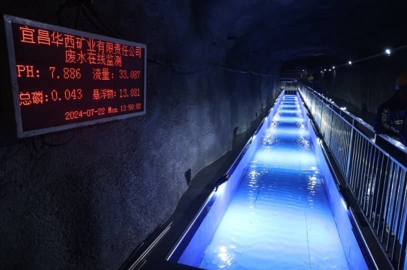 井巷中,一個(gè)個(gè)水池首尾相接,采礦廢水經(jīng)過(guò)混凝、平流沉淀、規(guī)整、壓濾等工序,處理達(dá)標(biāo)后由水倉(cāng)抽到地表排放。