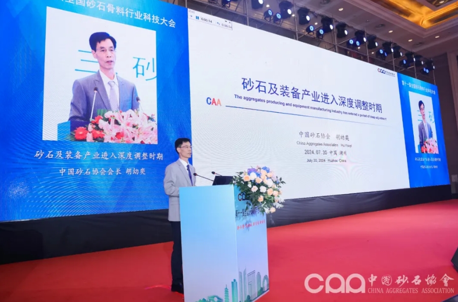 大會(huì)現(xiàn)場(chǎng),中國(guó)砂石協(xié)會(huì)會(huì)長(zhǎng)胡幼奕作了題為《砂石及裝備產(chǎn)業(yè)進(jìn)入深度調(diào)整時(shí)期》的主旨報(bào)告。