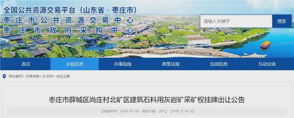 近日,山東省棗莊市公共資源交易中心發(fā)布薛城區(qū)尚莊村北礦區(qū)建筑石料用灰?guī)r礦采礦權(quán)掛牌出讓公告。該礦資源儲(chǔ)量5089.91萬(wàn)噸,生產(chǎn)規(guī)模400萬(wàn)噸/年,擬出讓年限12.72年,起始價(jià)超2.17億元,折合噸成本近4.27元。掛牌時(shí)間2024年8月15日-2024年8月28日。