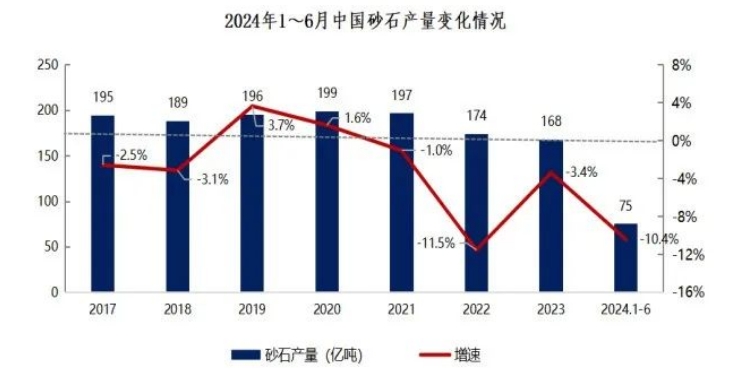 2024年上半年我國經(jīng)濟運行總體平穩(wěn),轉型升級穩(wěn)步推進,同時當前外部環(huán)境錯綜復雜,國內(nèi)有效需求依然不足。砂石行業(yè)受房地產(chǎn)投資持續(xù)下降、基建投資放緩影響,產(chǎn)量和價格持續(xù)下滑。