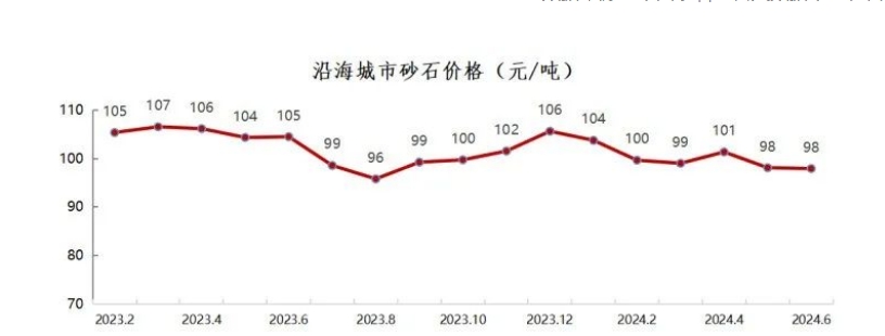 2024年上半年,我國砂石價格持續(xù)回落。砂石需求恢復乏力,市場整體較為疲軟,而砂石供應充足,使得砂石價格持續(xù)下降。