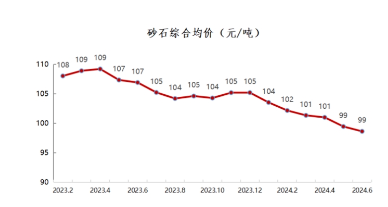 據(jù)中國砂石協(xié)會大數(shù)據(jù)中心統(tǒng)計,2024年6月,我國砂石綜合均價為99元/噸,同比下降7.8%。