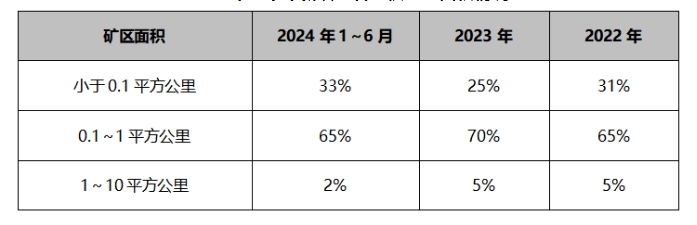 2024年上半年新設砂石礦權礦區(qū)面積情況