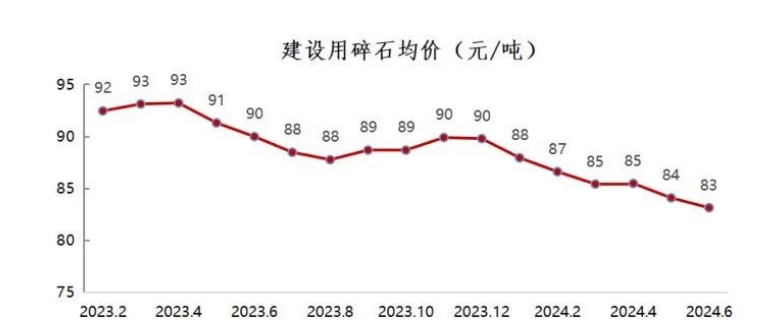 2024年6月,建設用碎石均價83元/噸,同比下降7.6%。