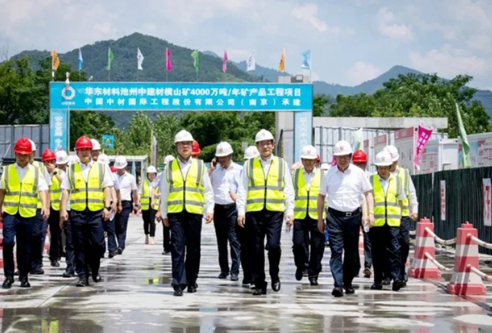 中國(guó)建材股份黨委常委/天山材料黨委書(shū)記/總裁趙新軍、中國(guó)建材集團(tuán)首席營(yíng)運(yùn)官/凱盛集團(tuán)黨委書(shū)記/董事長(zhǎng)尹自波、池州市委常委/統(tǒng)戰(zhàn)部部長(zhǎng)史孺牛、池州市委常委/貴池區(qū)區(qū)委書(shū)記馬勝利、石臺(tái)縣委書(shū)記靳武、中材國(guó)際副總裁/中材礦山黨委書(shū)記/董事長(zhǎng)郭正勇、中研院黨委書(shū)記/董事長(zhǎng)陶立綱、華東材料黨委書(shū)記/董事長(zhǎng)/總裁王盛偉等參加調(diào)研。