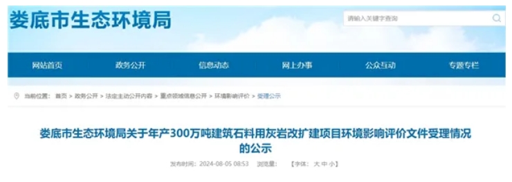 湖南300萬噸/年建筑石料用灰?guī)r改擴建項目環(huán)評受理
