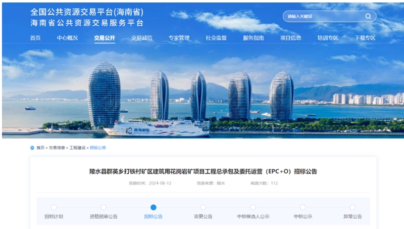 控制價5.09億元!海南年產(chǎn)675萬噸砂石礦EPC+O項目招標(biāo)