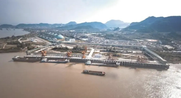 黃石市委副書記、市長吳之凌(前排左二)調(diào)研富池綜合碼頭項目建設(shè)情況