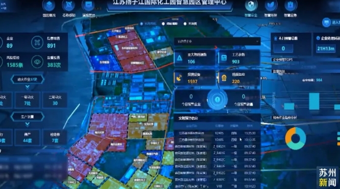 走進(jìn)江蘇揚(yáng)子江國(guó)際化學(xué)工業(yè)園智慧園區(qū)管理中心可以看到,借助大屏電子地圖,園區(qū)內(nèi)的化工生產(chǎn)企業(yè)均按照風(fēng)險(xiǎn)等級(jí)予以劃分。每家企業(yè)危險(xiǎn)廢物產(chǎn)出情況、關(guān)鍵生產(chǎn)數(shù)據(jù)等都實(shí)時(shí)在圖上顯示,從而全面提高園區(qū)內(nèi)一般工業(yè)固體廢物全流程監(jiān)管追溯能力。