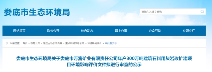 婁底市萬(wàn)富礦業(yè)有限責(zé)任公司于婁底市婁星區(qū)蛇形山鎮(zhèn)萬(wàn)橋村建設(shè)年產(chǎn)300萬(wàn)噸建筑石料用灰?guī)r改擴(kuò)建項(xiàng)目。