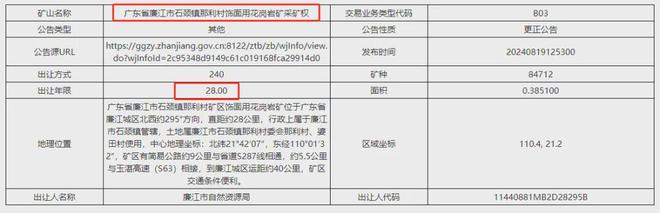 2.8億起拍!廉江總量超5300萬方花崗巖礦掛牌出讓!
