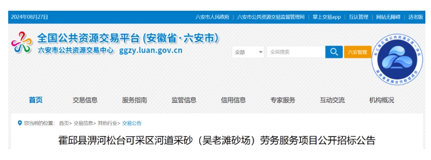 2169萬元!河道采砂勞務(wù)服務(wù)項目公開招標(biāo)