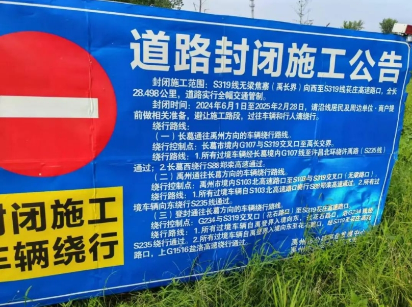 S319彭花公路(禹州段)因翻修而封閉(圖片來源:中國商報(bào))