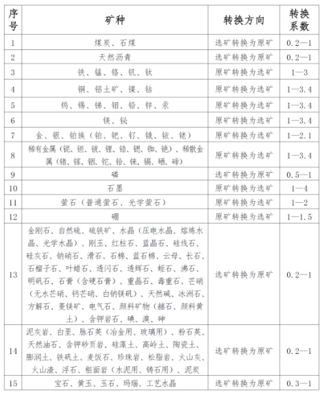 礦產(chǎn)品銷售收入轉(zhuǎn)換系數(shù)參考標(biāo)準(zhǔn)
