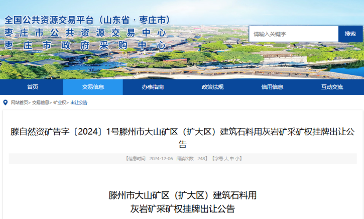 日前,山東省棗莊市滕州市自然資源局公開出讓滕州市大山礦區(qū)(擴(kuò)大區(qū))建筑石料用灰?guī)r礦采礦權(quán)。該項(xiàng)目礦區(qū)內(nèi)資源儲(chǔ)量7958.4萬噸,擬定生產(chǎn)規(guī)模為500萬噸/年,擬出讓年限16年,起始價(jià)約3.07億元,經(jīng)測(cè)算,該項(xiàng)目起拍成本約3.85元/噸。