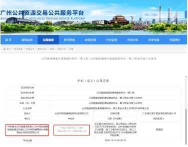 近日,廣東廣州公共資源交易服務(wù)平臺發(fā)布云浮港都城港區(qū)建城通用碼頭一期工程設(shè)計施工總承包中標(biāo)結(jié)果公示。中電建生態(tài)環(huán)境集團有限公司、中國電建集團港航建設(shè)有限公司、中國電建集團中南勘測設(shè)計研究院有限公司聯(lián)合中標(biāo)該項目,中標(biāo)金額近6.2億元,總工期360日歷天。