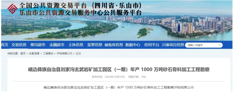日前,四川省樂山市公共資源交易服務(wù)中心發(fā)布峨邊彝族自治縣劉家溝玄武巖礦加工園區(qū)(一期)年產(chǎn)1000萬噸砂石骨料加工工程勘察評標(biāo)結(jié)果公示。中煤科工重慶設(shè)計研究院(集團(tuán))有限公司(四川省蜀水地質(zhì)環(huán)境研究有限責(zé)任公司)以約340.53萬元成為該項目第一中標(biāo)候選人。 據(jù)悉,該項目位于四川省峨邊彝族自治縣毛坪鎮(zhèn)劉家溝,總投資近6億元,項目業(yè)主為樂山國鑫礦業(yè)開發(fā)有限公司。項目礦區(qū)范圍建筑用玄武巖礦石資源量約10.55億噸,其中探明資源量約5.51億噸,控制資源量約1.16億噸,推斷資源量約3.88億噸。 出讓年限為30年。 此次工程勘察服務(wù)期為90日歷天,擬建設(shè)1000萬噸/年精品砂石骨料加工生產(chǎn)線及廠房、成品倉、裝車樓,以及綜合辦公樓(礦山總控中心)、供配電、給排水、總圖運輸、安全環(huán)保等公用輔助設(shè)施。原礦在礦區(qū)粗碎后形成≤300mm供礦原料,經(jīng)帶式輸送機運輸至加工區(qū)進(jìn)行破碎篩分。 項目主要采用三段兩閉路+立軸整形流程,分為生產(chǎn)道砟工況和不生產(chǎn)道砟工況,經(jīng)破碎粉篩后生產(chǎn)的主要產(chǎn)品包括0-5mm、5-10mm、10-15mm、31.5-63mm等精品砂石骨料和鐵路道砟產(chǎn)品。 據(jù)了解,第一中標(biāo)候選人中煤科工重慶設(shè)計研究院(集團(tuán))有限公司組建于1953年,現(xiàn)為國務(wù)院國資委管轄的中國煤炭科工集團(tuán)有限公司管轄企業(yè)。