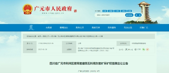 近日,四川省廣元市利州區(qū)擦耳巖建筑石料用灰?guī)r礦采礦權(quán)掛牌出讓,礦區(qū)查明建筑石料用灰?guī)r礦石資源量956.9萬噸,擬設(shè)生產(chǎn)規(guī)模不低于65萬噸/年,擬出讓年限不超過15.7年,拍賣起始價1312萬元。 值得注意的是,本次掛牌出讓的礦權(quán)須交納競買保證金人民幣貳佰陸拾叁萬元整(¥2630000.00元),競得人在簽訂《采礦權(quán)出讓合同》后6個月內(nèi),需向利州區(qū)人民政府一次性支付基礎(chǔ)設(shè)施損毀恢復(fù)及其他費用1272萬元。 四川省廣元市利州區(qū)擦耳巖建筑石料用灰?guī)r礦采礦權(quán) 掛牌出讓公告 根據(jù)《中華人民共和國礦產(chǎn)資源法》《自然資源部關(guān)于印發(fā)礦業(yè)權(quán)出讓交易規(guī)則的通知》(自然資規(guī)〔2023〕1號)《自然資源部關(guān)于深化礦產(chǎn)資源管理改革若干事項的意見》(自然資規(guī)〔2023〕6號)等有關(guān)法律法規(guī)的規(guī)定,受廣元市自然資源局委托,廣元市政務(wù)服務(wù)和公共資源交易中心以掛牌方式組織實施四川省廣元市利州區(qū)擦耳巖建筑石料用灰?guī)r礦采礦權(quán)掛牌出讓工作,現(xiàn)將有關(guān)事項公告如下。 一、出讓人 名稱:廣元市自然資源局 場所:廣元市利州區(qū)利州東路739號 二、礦業(yè)權(quán)交易平臺 名稱:廣元市政務(wù)服務(wù)和公共資源交易中心 場所:廣元市利州區(qū)玉潭路50號市政務(wù)服務(wù)和公共資源交易中心C區(qū)三樓 三、出讓采礦權(quán)基本情況 項目名稱:四川省廣元市利州區(qū)擦耳巖建筑石料用灰?guī)r礦 開采礦種:建筑石料用灰?guī)r 地理位置:廣元市利州區(qū)雪峰街道金山村 面積:0.09平方千米,拐點坐標如下(2000國家大地坐標): 開采標高:+1267米至+1118米 勘查工作程度:勘探 資源儲量:查明建筑石料用灰?guī)r礦石資源量956.9萬噸。 擬設(shè)生產(chǎn)規(guī)模:不低于65萬噸/年。 擬出讓年限:不超過15.7年(含基建期1年,具體按評審?fù)ㄟ^的《礦產(chǎn)資源開發(fā)利用方案》確定)。 資源開發(fā)利用情況:空白區(qū)新設(shè)采礦權(quán),未動用。 礦山地質(zhì)環(huán)境保護與土地復(fù)墾要求:按要求編制《礦山地質(zhì)環(huán)境保護與土地復(fù)墾方案》通過專家評審,開采過程中嚴格按照通過的《礦山地質(zhì)環(huán)境保護與土地復(fù)墾方案》組織實施。 起始價:人民幣壹仟叁佰壹拾貳萬元整(小寫:¥13120000.00元) 四、競買人的資格條件 1.在中華人民共和國境內(nèi)注冊且具有獨立承擔民事責任的企業(yè)法人。 2.未被列入全國礦業(yè)權(quán)人勘查開采信息公示系統(tǒng)中的“嚴重違法名單”;未被“信用中國”網(wǎng)站列入“失信懲戒對象”“安全生產(chǎn)領(lǐng)域失信生產(chǎn)經(jīng)營單位”;未被“國家企業(yè)信用信息公示系統(tǒng)”列入“經(jīng)營異常名錄”“嚴重違法失信企業(yè)名單”。 3.法律、行政法規(guī)規(guī)定的其他條件。 4.本次出讓不接受聯(lián)合體申請。 五、出讓方式及交易的時間、地點 出讓方式:掛牌 掛牌時間:2025年2月12日9時至2025年2月26日10時 地點:廣元市利州區(qū)玉潭路50號市政務(wù)服務(wù)和公共資源交易中心C區(qū)三樓 六、獲取掛牌文件的途徑和申請報名的起止時間及方式 獲取出讓文件的途徑:競買申請人須于2025年2月10日23時59分前通過賬號密碼或CA登錄全國公共資源交易平臺(四川省·廣元市)(http://www.gyggzyjy.cn/)電子交易平臺免費下載出讓文件。CA數(shù)字證書辦理方式詳見全國公共資源交易平臺(四川省·廣元市)辦事指南(咨詢電話:0839-5572552)。 申請報名方式:本次掛牌出讓實行網(wǎng)上提交報名資料(不接受紙質(zhì)資料),報名資料須加蓋競買申請人公章。競買申請人須于2025年2月11日上午12:00前登錄全國公共資源交易平臺(四川省·廣元市)(http://www.gyggzyjy.cn/)提交報名資料,逾期提交報名資料的系統(tǒng)不予接受。申請人提交的報名資料必須真實、合法、有效,如申請人提交虛假報名資料將承擔法律責任(咨詢電話:0839-5572009)。 競買保證金交納:本次掛牌出讓須交納競買保證金人民幣貳佰陸拾叁萬元整(¥2630000.00元)。申請人須于北京時間2025年2月11日上午10:00前通過申請人的賬戶以銀行轉(zhuǎn)賬、電匯、網(wǎng)上銀行轉(zhuǎn)賬方式足額交納競買保證金,競買保證金到達指定賬戶的時間以銀行到賬時間為準。競買保證金交納信息須登錄全國公共資源交易平臺(四川省·廣元市)—電子交易平臺,從土地(礦權(quán))交易欄目“查看保證金”模塊中查詢。 七、確定競得人的標準和方法 本次掛牌采用無底價增價方式掛牌出讓,價高者得。 八、風險提示 1.競買人應(yīng)遵循“公平公正、誠實信用”的原則參與本次礦業(yè)權(quán)出讓競買,對所提交的文件和其他資料的真實性、合法性負責。對違反公共資源交易法律法規(guī),違背誠實信用原則的競買人,將按規(guī)定對相關(guān)失信單位和失信個人實施聯(lián)合懲戒。 2.出讓人提供的相關(guān)地質(zhì)資料基于現(xiàn)階段的認識,僅供參考,其相關(guān)描述并不構(gòu)成出讓人對開采區(qū)塊資源前景、品質(zhì)等出具的保證。競買申請人應(yīng)充分了解出讓開采區(qū)塊的現(xiàn)狀、地質(zhì)成礦條件及土地、林權(quán)、地表附屬物、道路、廢土廢渣占地堆放、社